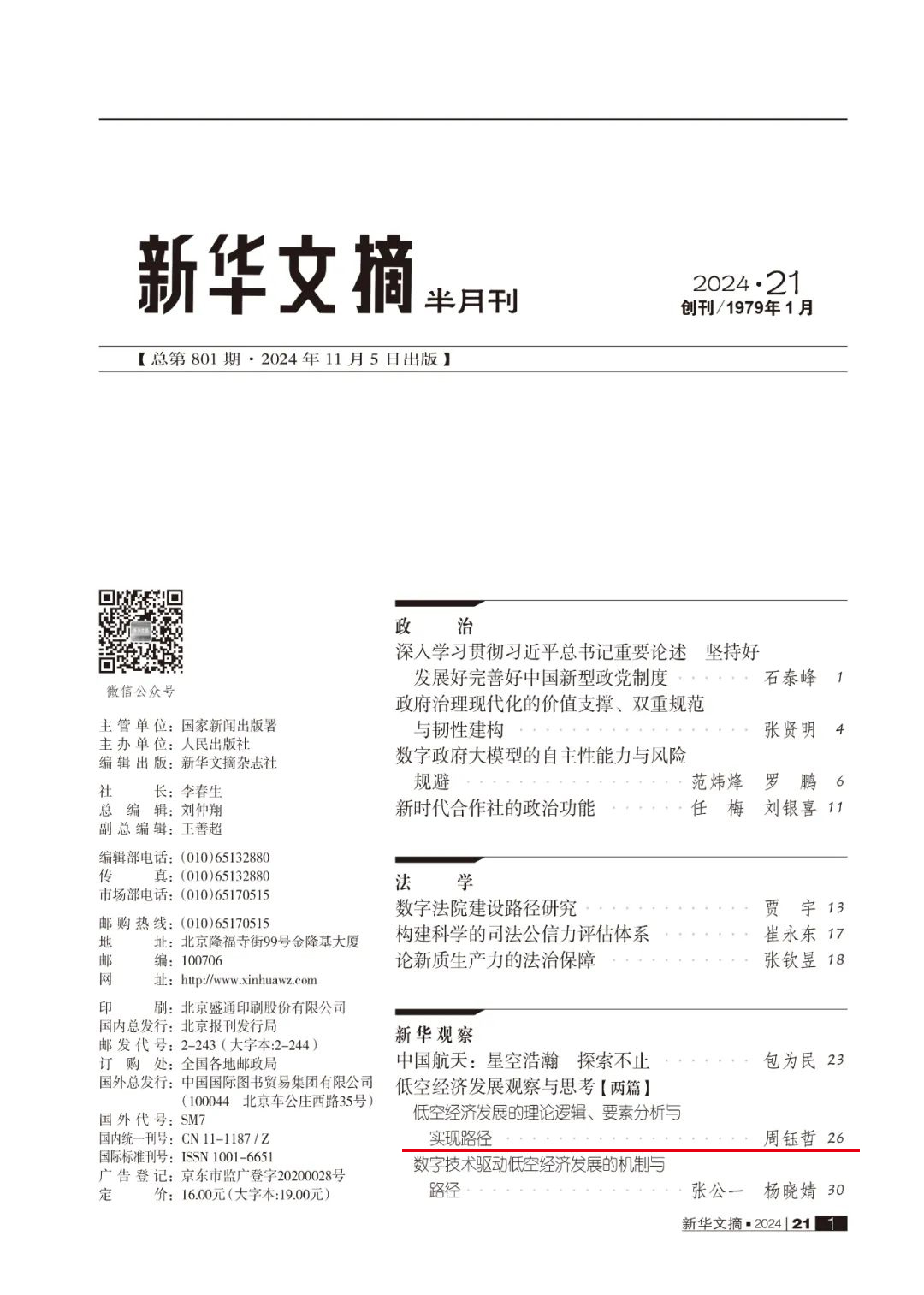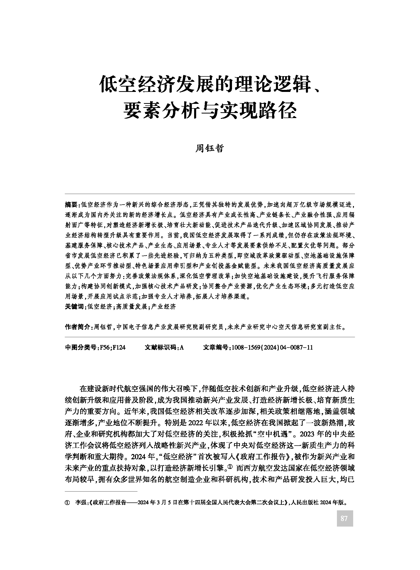 《东南学术》2024年第4期刊发的《低空经济发展的理论逻辑、要素分析与实现路径》一文被《新华文摘》2024年第21期全文转载。该文作者周钰哲为中国电子信息产业发展研究院副研究员,未来产业研究中心空天信息研究室副主任。