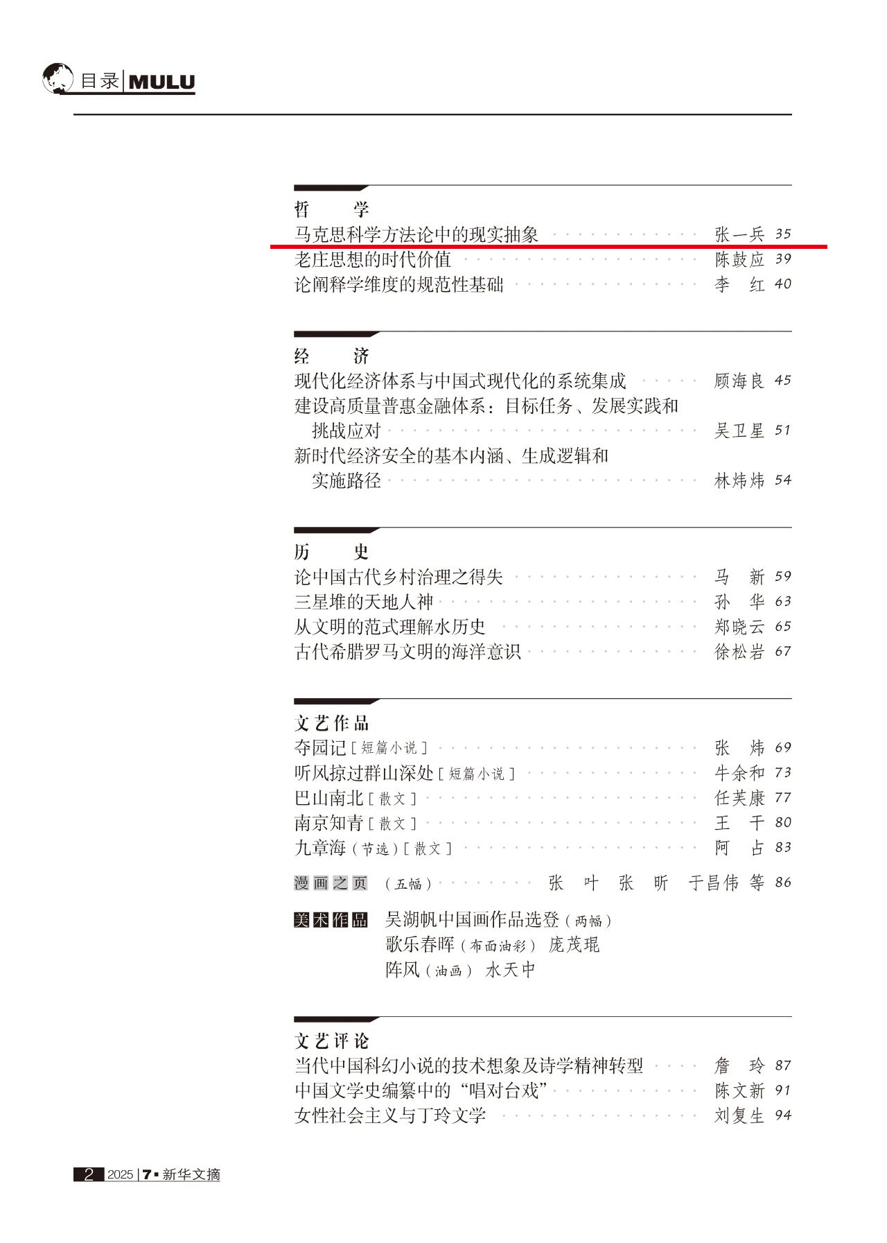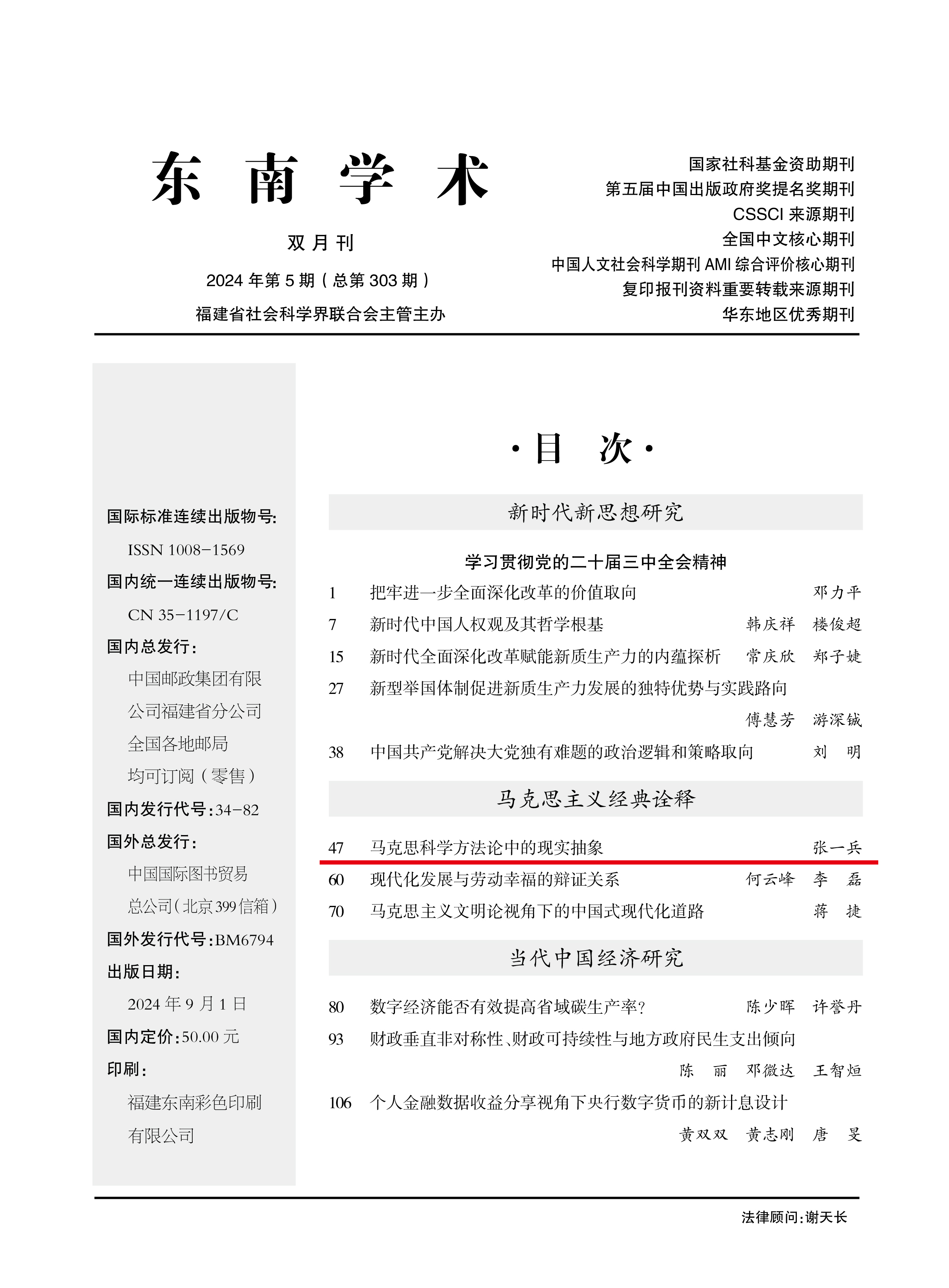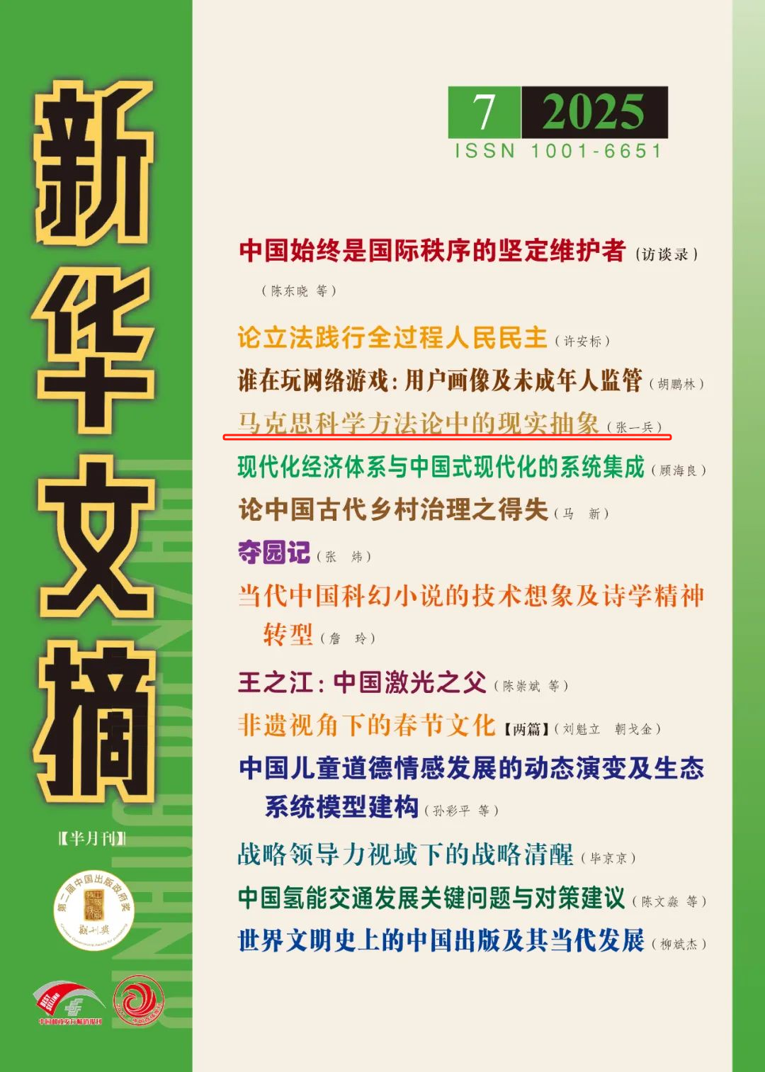 《东南学术》2024年第5期刊发的《马克思科学方法论中的现实抽象》一文被《新华文摘》2025年第7期全文转载并上封面要目。该文作者张一兵为南京大学文科资深教授,马克思主义社会理论研究中心研究员,哲学系博士生导师。