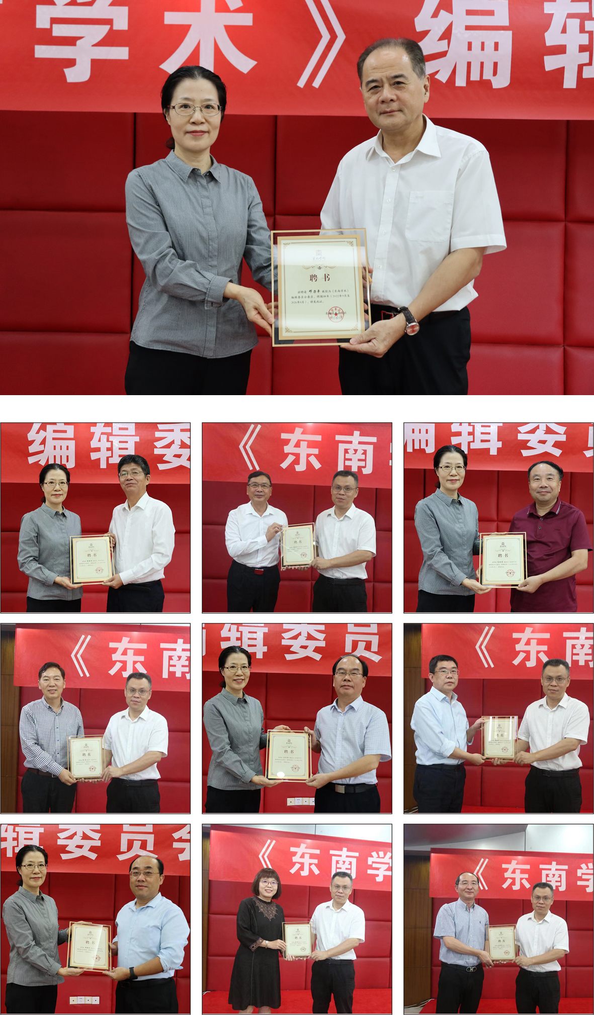 会上,林蔚芬书记和郑东育副主席共同为新一届编委颁发了聘书,郑东育副主席向新一届编委介绍了《东南学术》近年来的办刊情况。厦门国家会计学院邓力平教授,厦门大学党委副书记徐进功教授,福州大学副校长黄志刚教授,厦门大学党委宣传部部长、社科处处长高和荣教授,厦门大学社会与人类学院院长胡荣教授,厦门大学公共事务学院院长朱仁显教授,厦门大学公共事务学院黄新华教授,厦门大学经济学院副院长周颖刚教授,福建师范大学经济学院院长黄瑾教授,福建师范大学文学院袁勇麟教授等与会的编委充分肯定了《东南学术》的办刊成绩,并对《东南学术》办刊工作和2023年重点选题方向提出意见与建议。